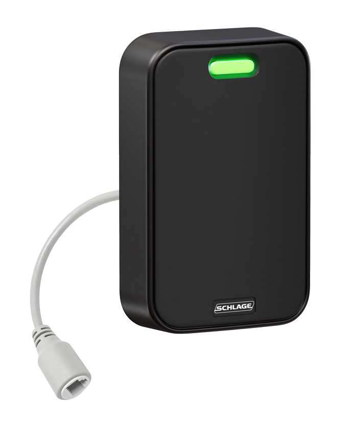 The reader-controller is an all-in-one solution that includes a controller inside the reader. These Schlage RC reader controllers connect directly to existing IT networks, reducing installation time and eliminating the need to run separate power to the door. The reader-controller concept was developed by Isonas (who is now part of Schlage).
